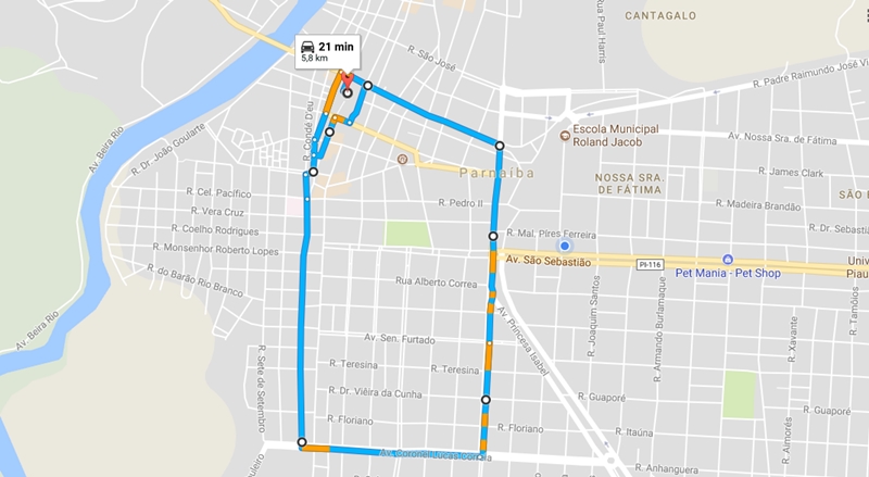 Saída da Praça da Graça, Rua Oscar Clark, Rua Duque de Caxias, Rua Prof. Amstein, Rua Padres Castelo Branco, Avenida Coronel Lucas Correia, Avenida das Normalistas, Avenida Chagas Rodrigues, Avenida Presidente Getúlio Vargas, até retornar à Catedral.