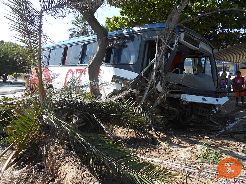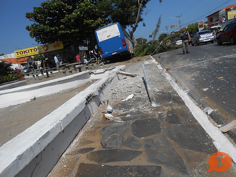 Um ônibus que faz transporte interestadual de passageiros invadiu uma praça na Avenida São Sebastião, altura da Rua Franklin Veras, na manhã deste sábado (09).