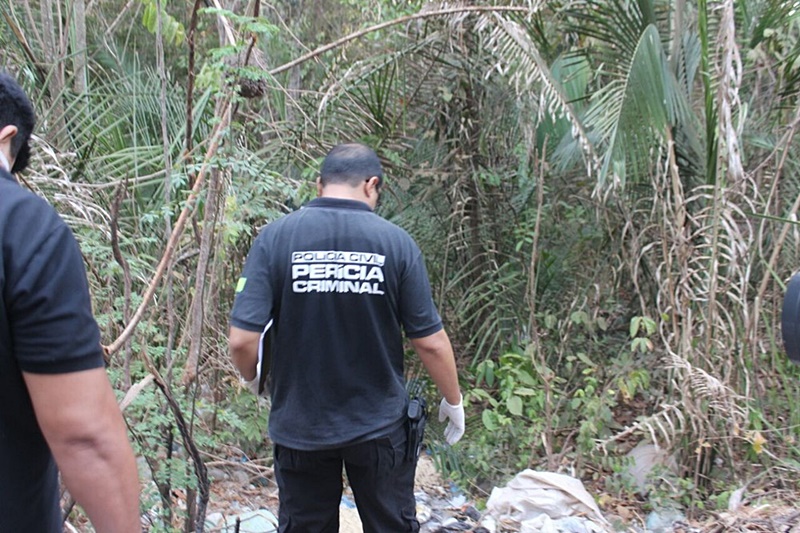 Peritos fazem investigação no local onde foi encontrado o corpo (Foto: Lucas Marreiros, G1 PI)