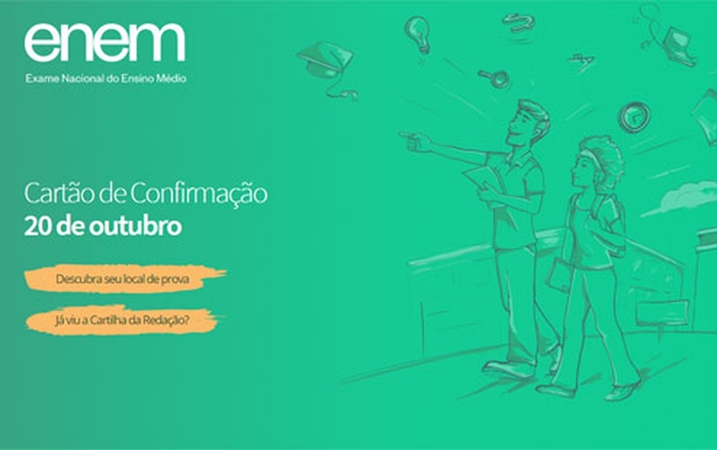 A partir das 10h desta sexta-feira (20) (horário de Brasília), os candidatos que vão fazer o Exame Nacional do Ensino Médio (Enem) neste ano poderão consultar o cartão de confirmação da inscrição, que contém informações como o local onde ele fará a prova.