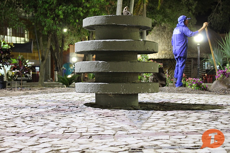 Na noite desta segunda-feira (16), eletricistas e engenheiros davam os últimos ajustes na iluminação da fonte e, em outros pontos da Praça da Graça.