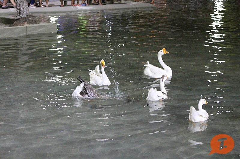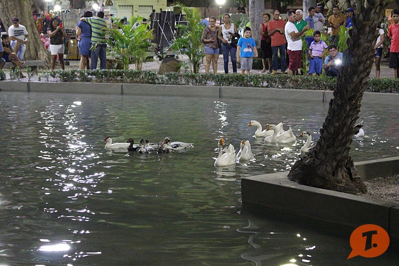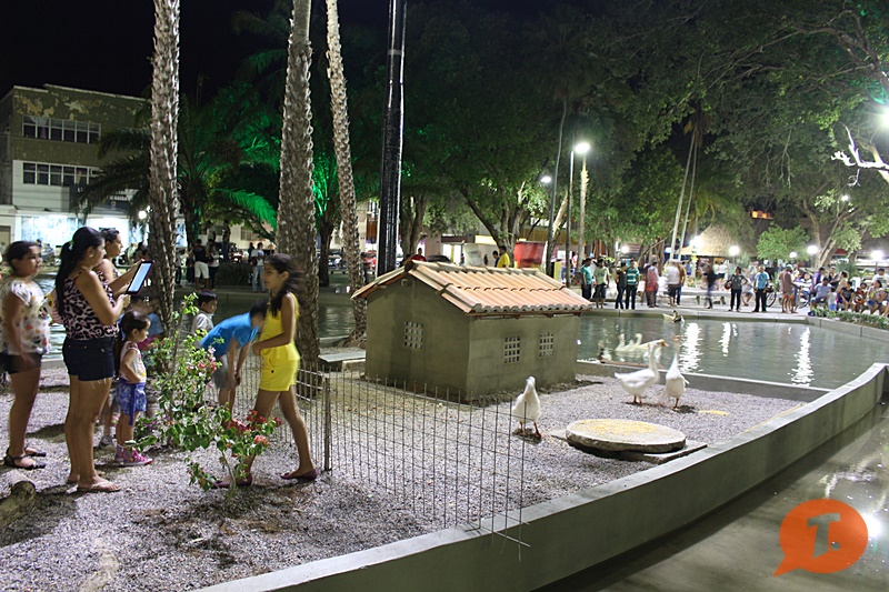 Mas as estrelas da noite, e, atração preferida das crianças, foram os gansos que graciosamente nadam no laguinho artificial da Praça. A Prefeitura garante que, além da reforma e iluminação da Praça, a segurança patrimonial foi reforçada para garantir tranquilidade aos visitantes e garantir a preservação do local.