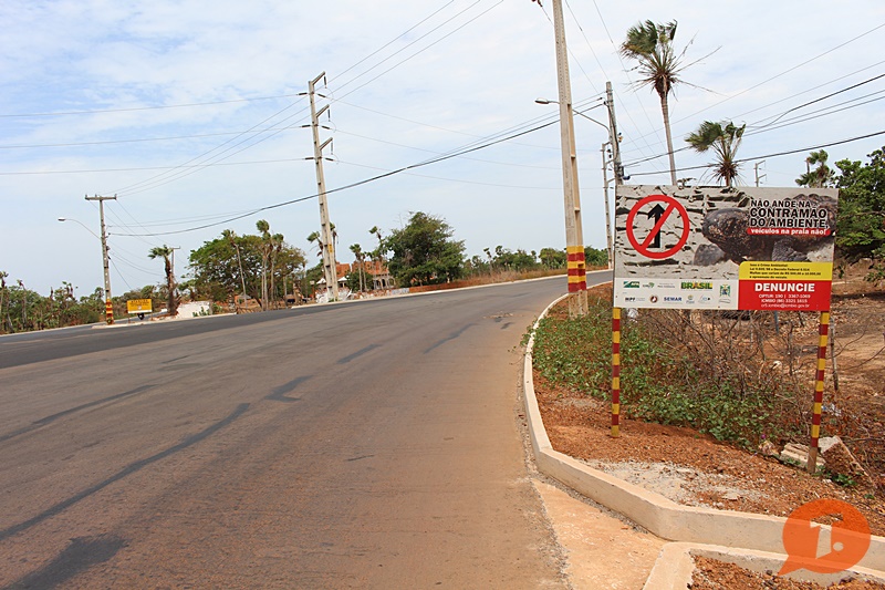 Por falar em sinalização, uma placa que alerta para não estacionar ou andar de carro na praia, confunde quem trafega pela via, pois a mesma utiliza um símbolo de trânsito indicando a primeira vista que seguir reto seria “contramão”.