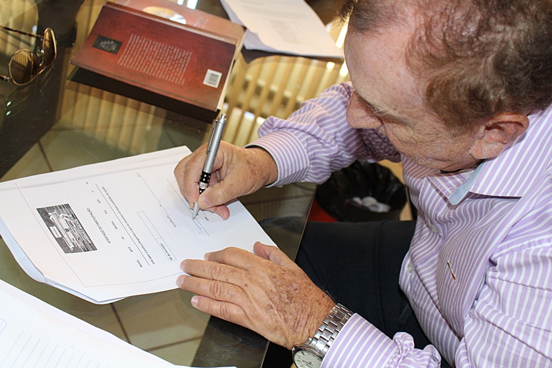 Prefeito Mão Santa assinando a ficha de inscrição da 1ª Meia Maratona de Parnaíba