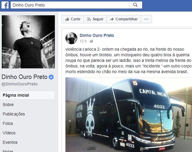 O vocalista Dinho Ouro Preto contou em seu Facebook: