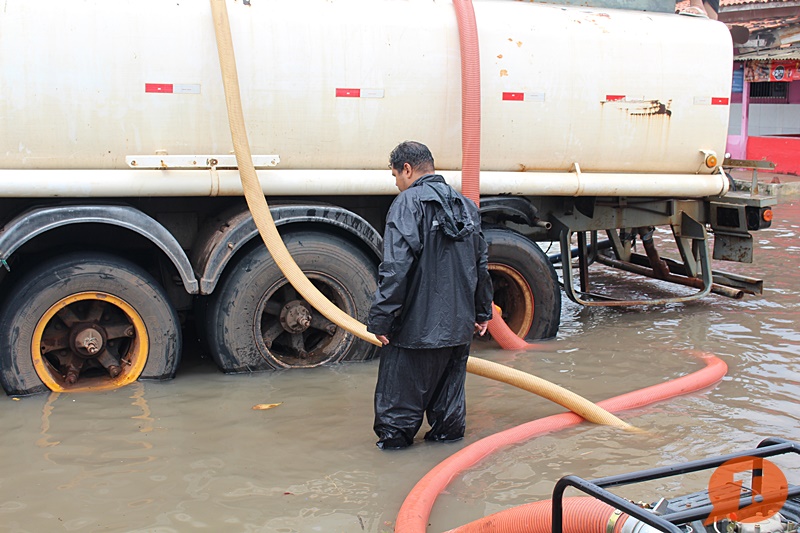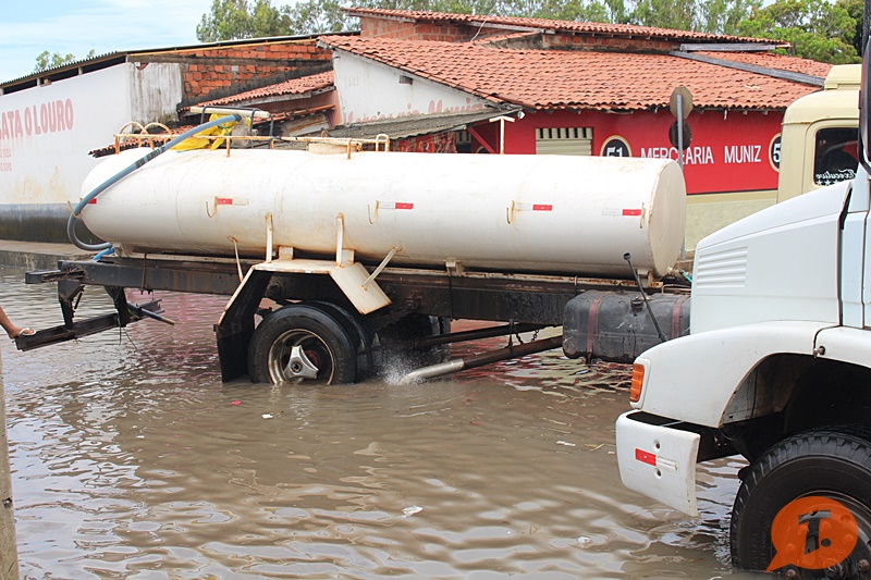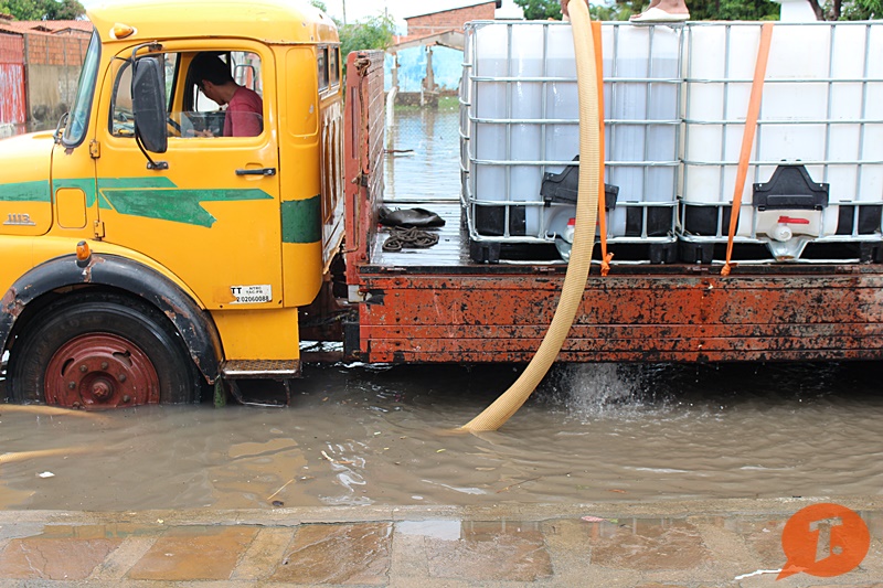 Desde às 6 horas da manhã deste domingo (18), caminhões pipa a serviço da Prefeitura de Parnaíba, junto às equipes da Secretaria Municipal de Infraestrutura, iniciaram uma operação para retirar água da rua anhanguera, no Bairro Piauí.