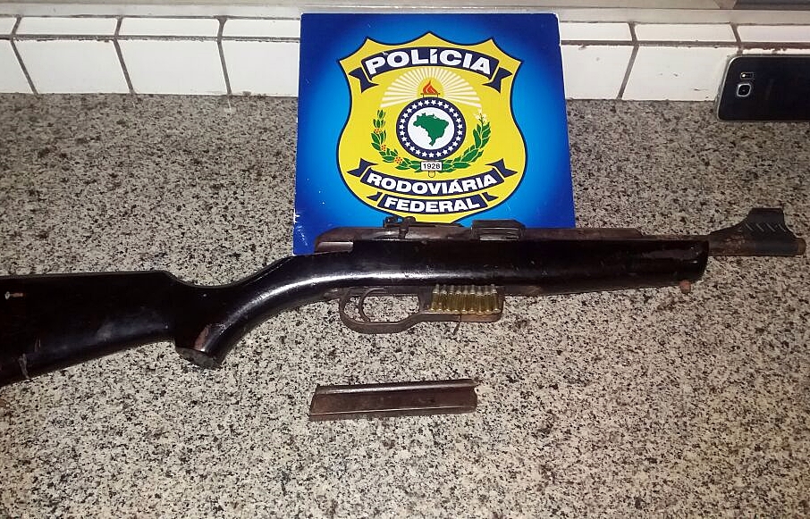 Ao abordar o veículo e realizar as verificações habituais, a equipe PRF constatou a presença da arma, carregador e munições.