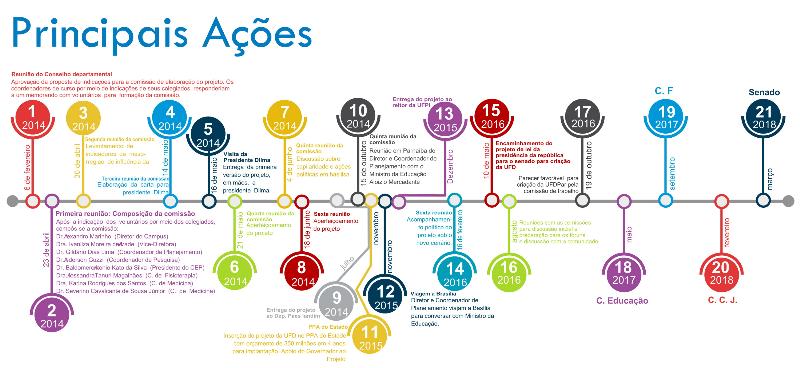 Foi apresentado um infográfico sobre as principais ações e datas que marcaram cada etapa da criação da Universidade.