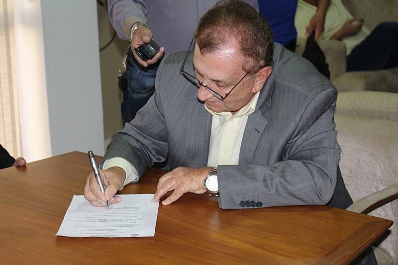 Diversos secretários participaram da assinatura de portaria do novo Secretário de Saúde, na sala de reuniões do Prefeito Mão Santa.