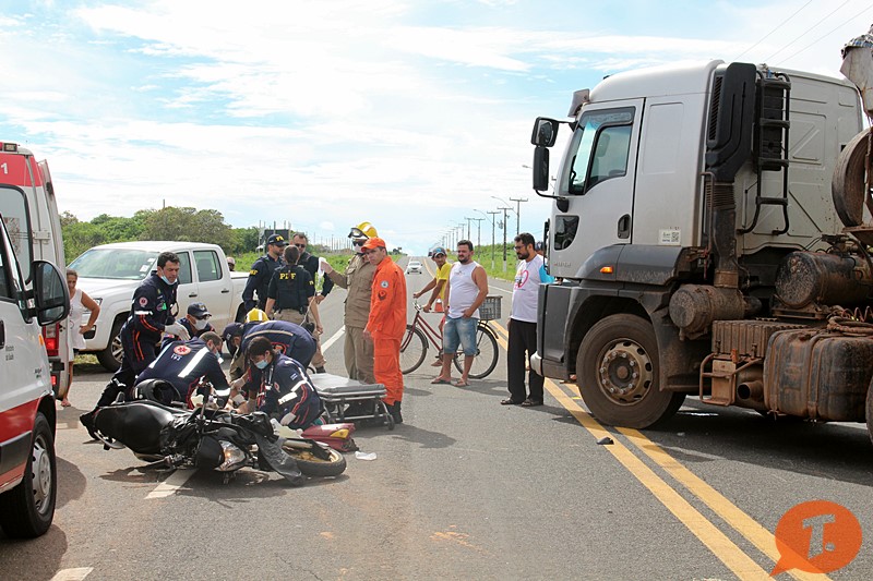 A Polícia Rodoviária Federal esteve no local realizando os primeiros levantamentos do acidente. Há indícios que a motocicleta tenha colidido inicialmente com um dos pneus da carreta. O condutor do veículo permaneceu no local do acidente e acionou o socorro.