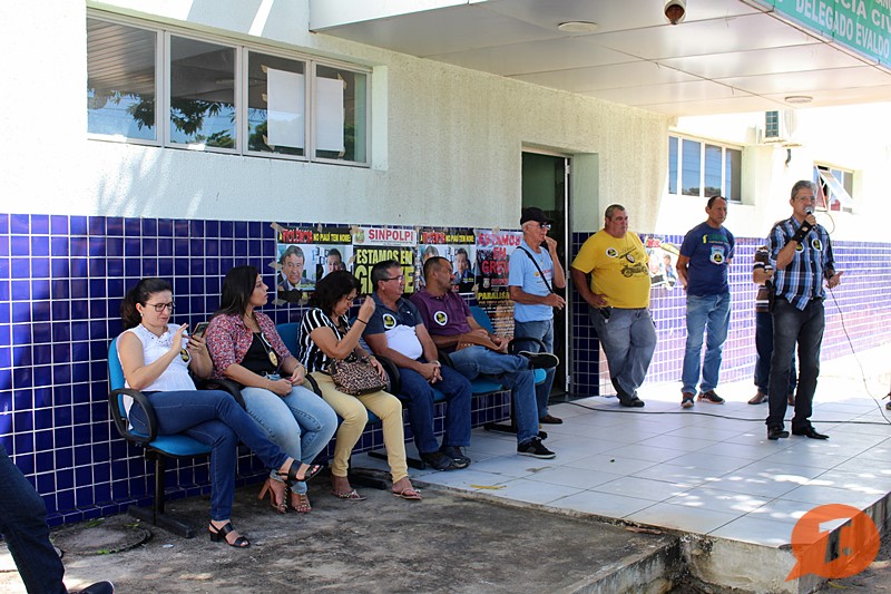 Reunidos em frente ao Complexo de delegacias da Polícia Civil em Parnaíba, os policiais ouviram atentamente as palavras de Toni Boson e de Constantino Júnior, presidente do Sindicado.