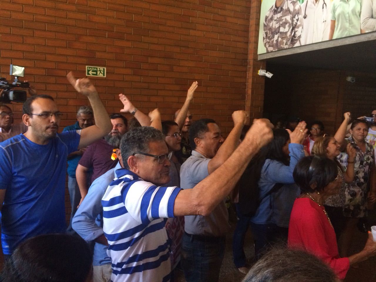 Professores acompanhavam a sessão desta quarta-feira (20). Dois servidores saíram feridos, um com sangramento no nariz e outro com suspeita de fratura no fêmur.