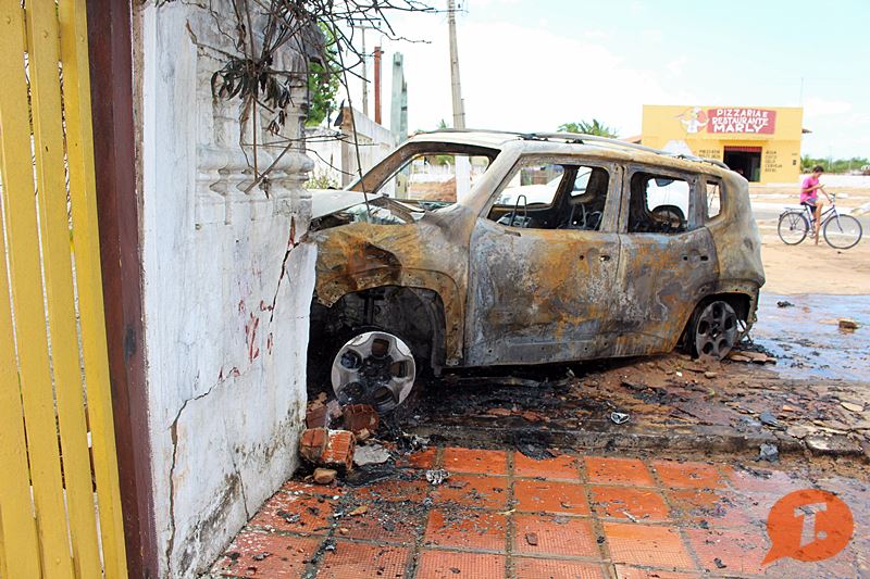 Segundo testemunhas o veículo não realizou a rotatória do coqueiro, vindo a chocar-se com um outro veículo que estava estacionado e logo em seguida invadiu uma residência derrubando o muro e pegando fogo.