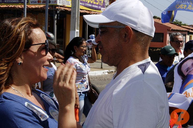 A concentração aconteceu na Praça do IPASE, Bairro Pindorama, e seguiu até o Bairro Piauí, onde a candidata fez um pequeno discurso.