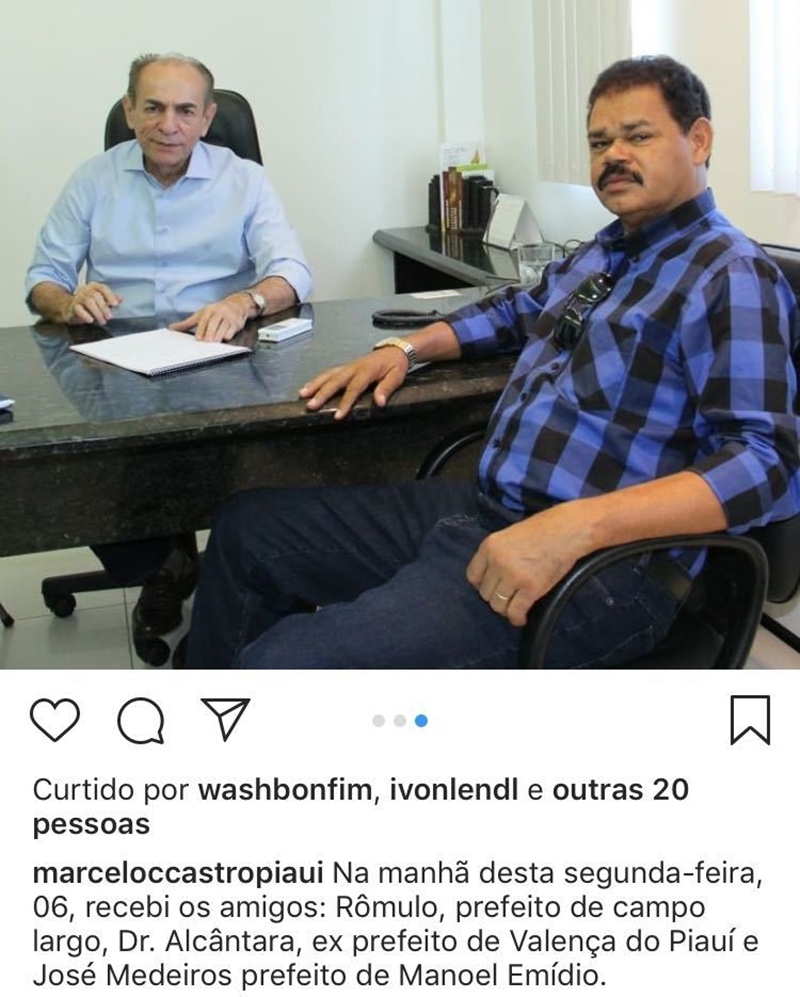 Marcelo Castro postou a foto em seu Instagram, na descrição da foto ele destaca a visita do “amigo e ex-prefeito” Zé Medeiros.