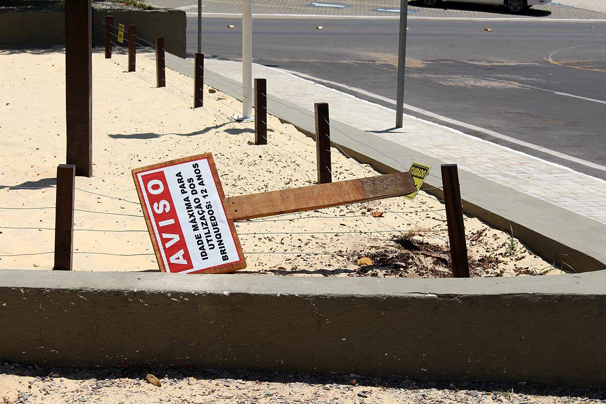 Vândalos QUEBRAM brinquedos e placas indicativas da Praça Mirócles Veras.