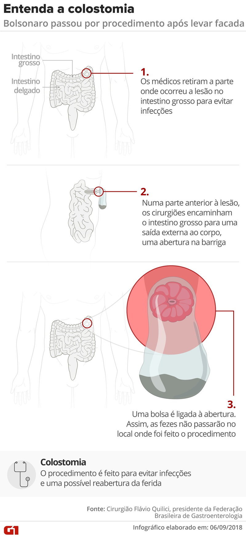 - Ele fez uma colostomia temporária para evitar uma infecção no intestino grosso.