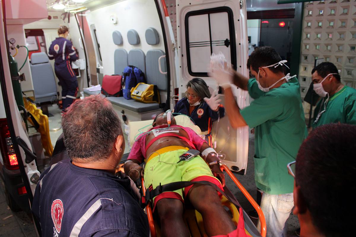 Vítima sendo encaminhada ao Centro Cirúrgico do HEDA