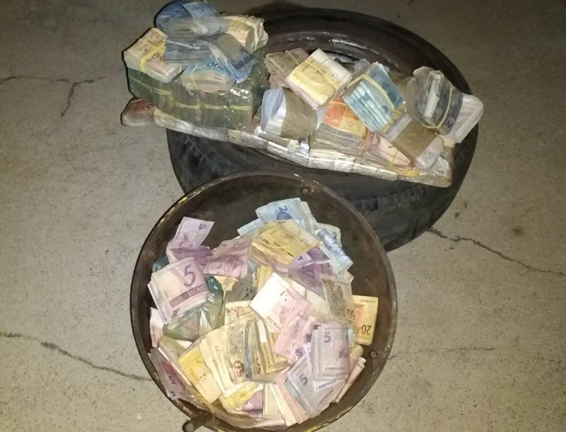 Foi então verificado pelos policiais um fundo falso no cilindro, que continha o valor de R$ 135.569,00.