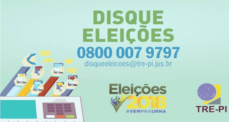 O Disque Eleições começou a funcionar em regime de plantão aos sábados, domingos e feriados, das 8h às 19h, até as eleições de outubro. Em funcionamento no Tribunal Regional Eleitoral do Piauí (TRE-PI), o serviço visa disponibilizar de forma rápida e objetiva, informações acerca do processo eleitoral de 2018. Atualmente o serviço conta com uma equipe de seis servidores, trabalhando em revezamento.