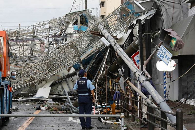 País emitiu alertas de retirada para mais de 1 milhão de pessoas e cancelou centenas de voos; navio-tanque se chocou contra ponte em Kansai.