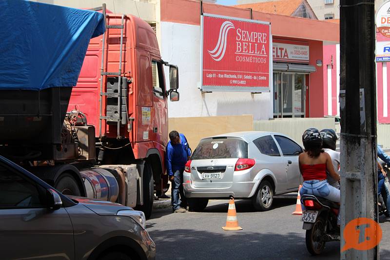 Por volta das 9h15min desta quinta-feira (11), um acidente de trânsito envolvendo uma carreta Volvo e um veículo Ford Ka, causou congestionamento no centro de Parnaíba.