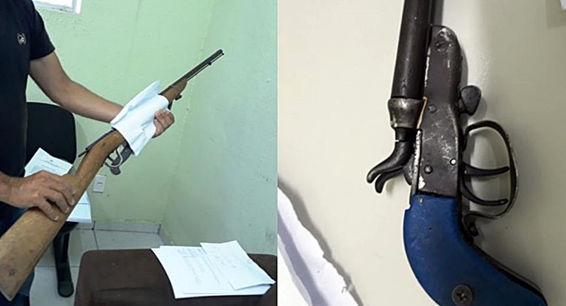 Neste final de semana (20 e 21) a Polícia Militar conseguiu apreender duas armas de fogo, uma espingarda do tipo “bate-bucha” e uma pistola artesanal.