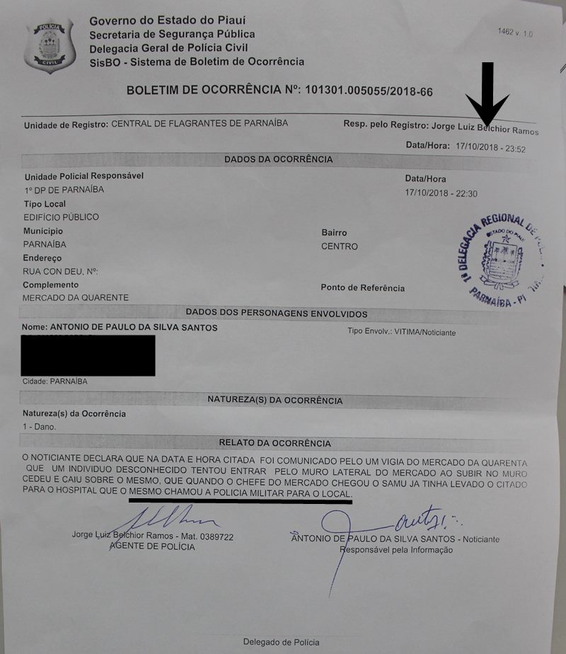 Já o responsável pelo Mercado da 40, Sr. Paulo Pinto, alegou que registrou Boletim de Ocorrência, por volta das 23h52 desta quarta-feira e, aguardou a chegada da perícia até às 09h da manhã de hoje.