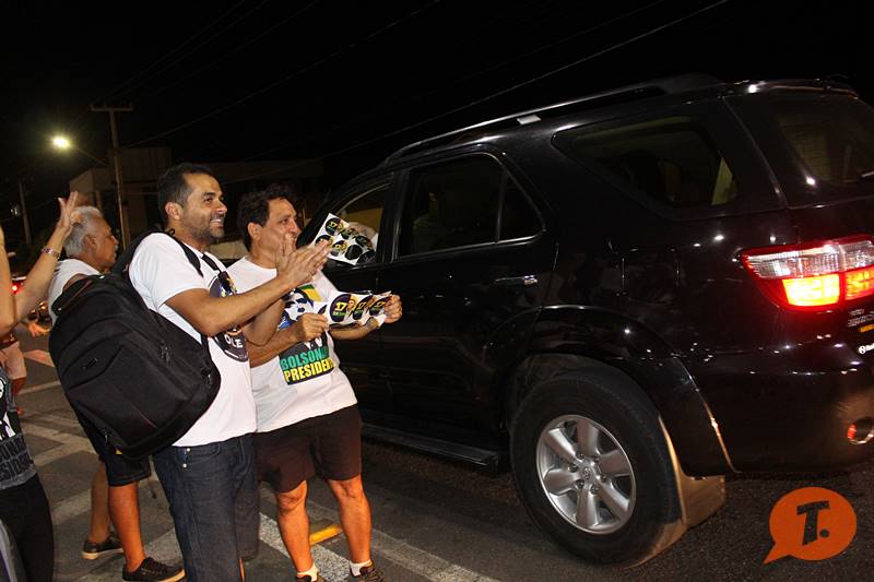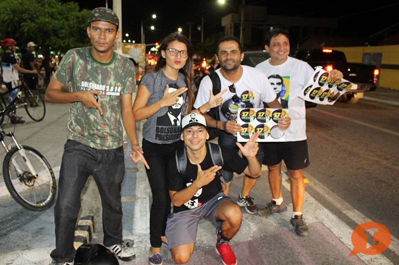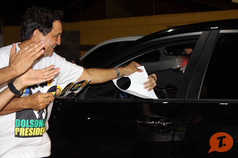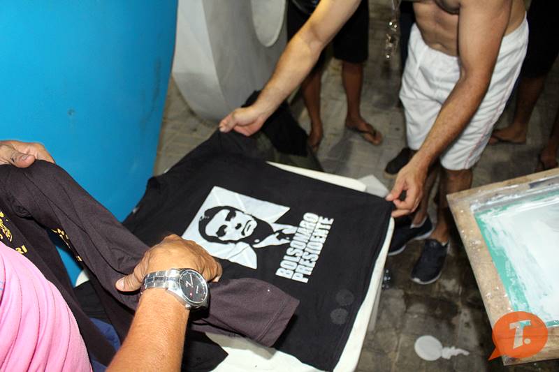 Na noite desta sexta, simpatizantes de Jair Bolsonaro realizaram adesivaço e pintura gratuita de blusas na Praça do Amor, localizada na Avenida São Sebastião.