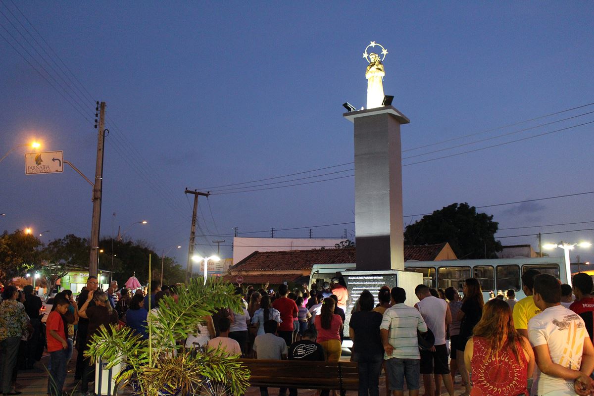 Prefeitura de Parnaíba construiu praça em homenagem a Santo Padroeiro do Bairro São Francisco da Guarita. Imagem exposta tem 1,70m de altura.