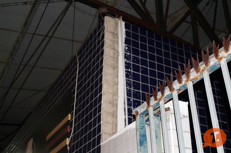 Parte do muro que dá acesso a área de carga/descarga de mercadorias cedeu com o peso do invasor