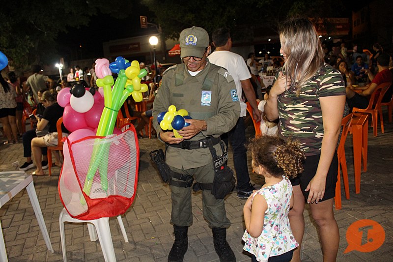 Quem também atraiu a atenção principalmente da criançada foi o Policial Militar da CIPTur (Companhia Independente de Policiamento Turístico), Cabo Assis, que realizou dobradura de balões, criando animais e objetos a todo o momento.
