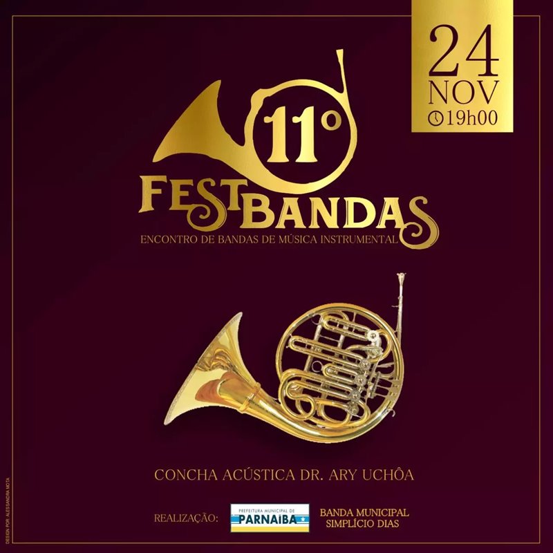 Acontece amanhã (24), a partir das 19h, na Concha Acústica Ary Uchoa, o 11º Festival de Bandas, uma realização da Prefeitura Municipal de Parnaíba, através da Superintendência de Cultura e Banda Municipal Simplício Dias da Silva.