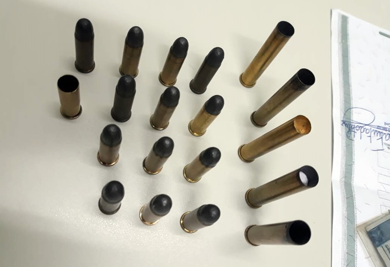 Com o mesmo foram apreendidos, um revólver calibre .38 com 13 munições intactas e 1 deflagrada além de uma espingarda caseira com 5 munições deflagradas.
