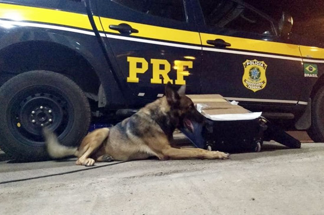 Ao realizar a fiscalização no bagageiro inferior com o cão PRF K9 Titan, o mesmo sinalizou positivamente em uma bagagem constatando-se que em seu interior havia 26 tabletes de substância com odor e características da popularmente conhecida maconha. CONTINUA DEPOIS DA PUBLICIDADE.