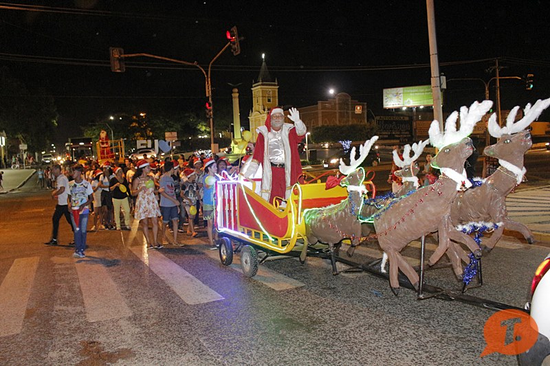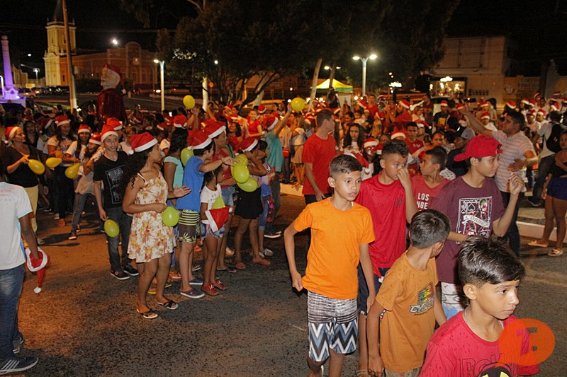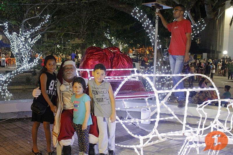 Centenas de crianças (e alguns adultos) fizeram fila para registrar o momento com o bom velhinho. Antes, Papai Noel percorreu diversas ruas e avenidas acompanhado de populares, alunos da rede municipal de ensino, banda municipal Simplício Dias e, atores, fantasiados de personagens de histórias infantis.