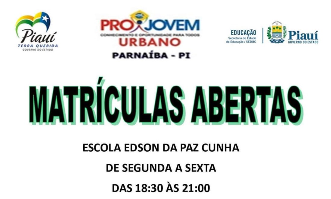Informamos à comunidade parnaibana que o Projovem Urbano já iniciou, o programa está funcionando na escola Edson da Paz Cunha no turno noturno a partir das 18: 30.