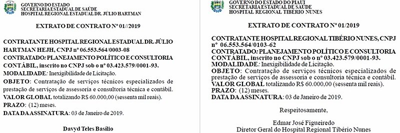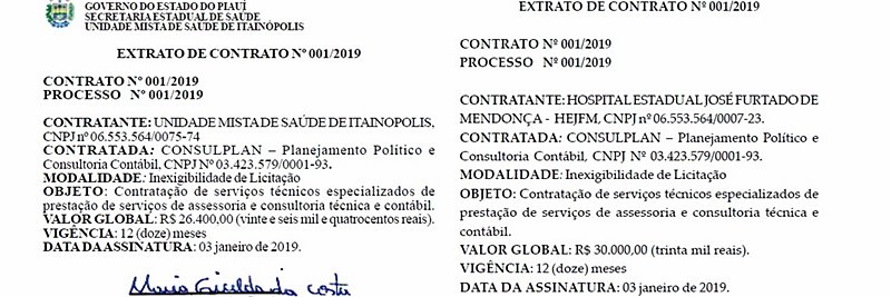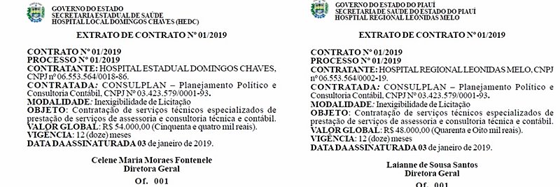 Ao todo oito hospitais estaduais contrataram empresa sem licitação para prestação de serviços especializados de assessoria e consultoria técnica e contábil. A empresa contratada tem sede em Valença do Piauí. As informações são do Portal GP1.