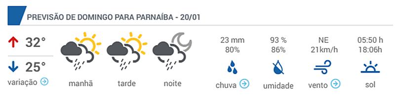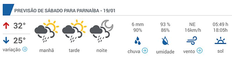 Segundo o portal Clima Tempo, o final de semana em Parnaíba será abafado alternando com períodos de chuva.