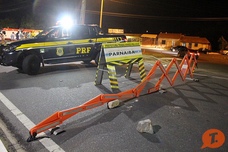 O motociclista furou um bloqueio da PRF, colocado para que uma equipe da Secretaria de Infraestrutura, da Prefeitura de Parnaíba realizasse um reparo na via.
