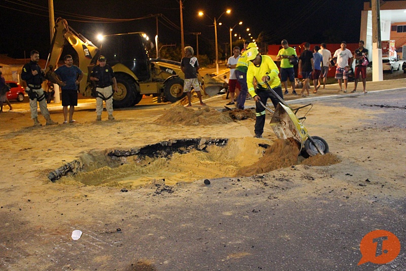 A Prefeitura de Parnaíba realiza intervenção de emergência no trecho, desde o meio dia deste sábado (26), logo após ser informada do aparecimento do buraco. O trecho é de responsabilidade do DNIT – Departamento Nacional de Infraestrutura de Transportes, porém, devido a possibilidade iminente de um acidente (como o que aconteceu), a Secretaria Municipal de Infraestrutura realizou trabalho de compactação do espaço, até que o DNIT inicie o reparo definitivo do trecho.