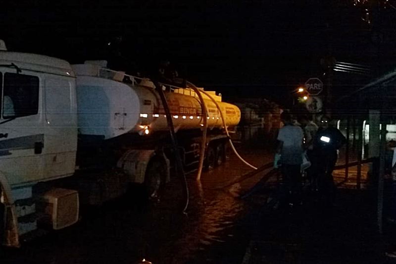 Na área do chamado piscinão 1, no Bairro Piauí, equipes da Defesa Civil Municipal e, da Secretaria Municipal de Infraestrutura passaram a madrugada com o trabalho de retirada das águas utilizando bombas. O movimento de caminhões pipa foi intenso.