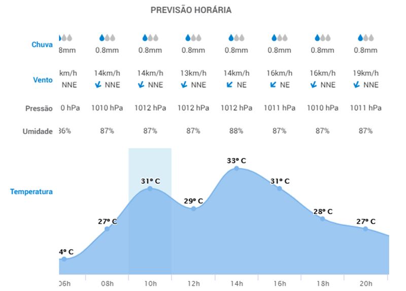 Previsão para esta quinta (14). Fonte: climatempo.com.br