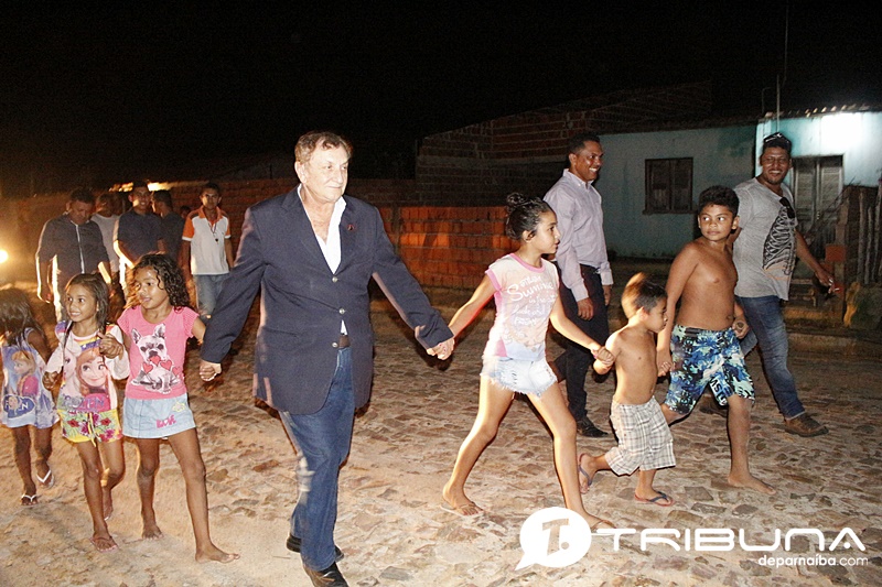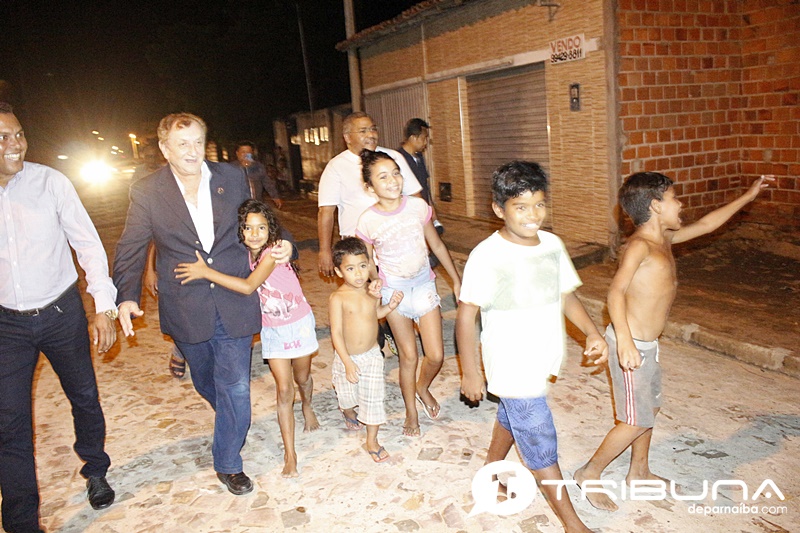 No Bairro Planalto, Mão Santa foi recebido por dezenas de crianças que o acompanharam durante sua caminha de inauguração das ruas, que antes eram de areia e agora foram completamente pavimentadas com calçamento.