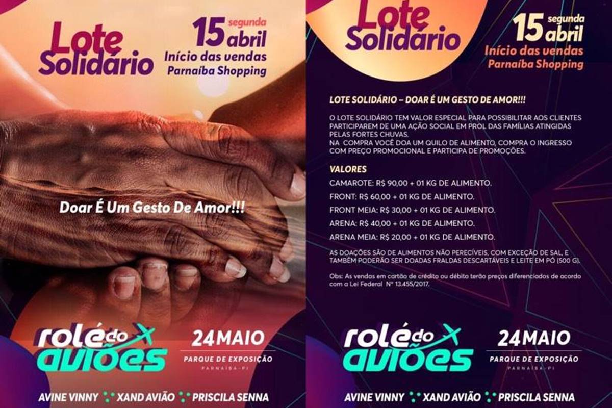 O LOTE SOLIDÁRIO tem valor especial para possibilitar que você participe de uma AÇÃO SOCIAL em prol das famílias atingidas com as fortes chuvas.