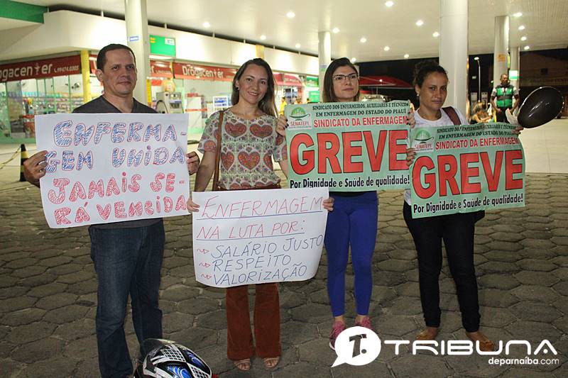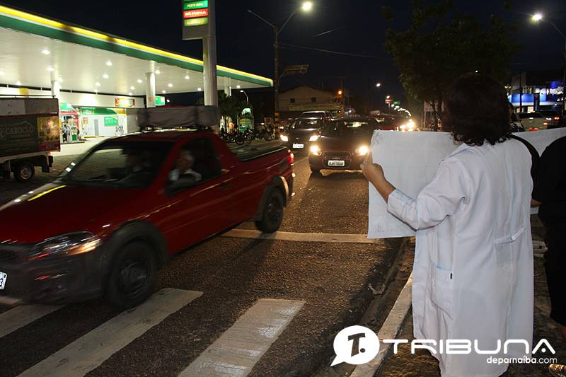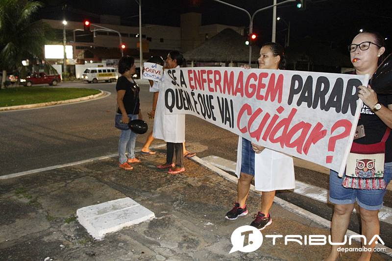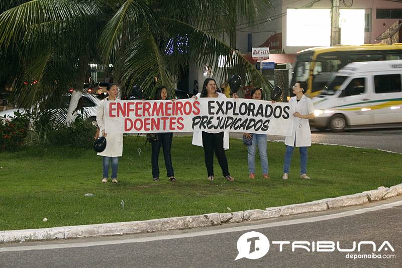 Enfermeiros e técnicos em enfermagem do Hospital Estadual Dirceu Arcoverde, realizaram no início da noite desta quarta-feira (10), uma manifestação no Balão do Mirante, em Parnaíba.