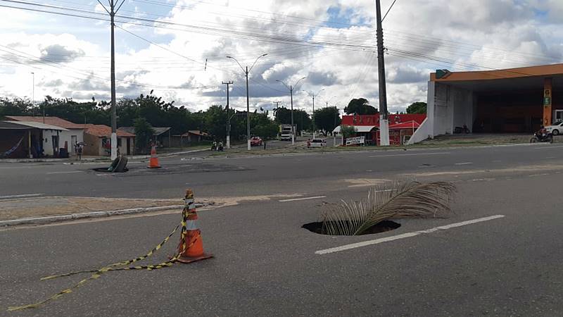 O local está sinalizado pela PRF e Prefeitura Municipal de Parnaíba. Há risco de desabamento da pista.