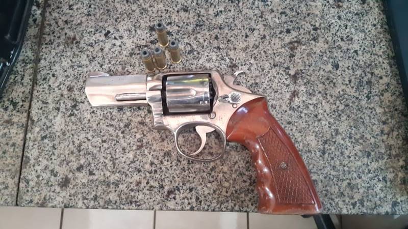 Com o condutor foram encontrados um revólver cal. 38 de marca Taurus, 04 (quatro) munições intactas. O revólver encontrava-se carregado com as munições, em ponto de pronto emprego.