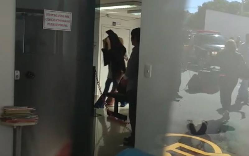 Najila chegou com seus advogados. Cercada pela imprensa, ela entrou na delegacia com a cabeça coberta por um casaco preto.