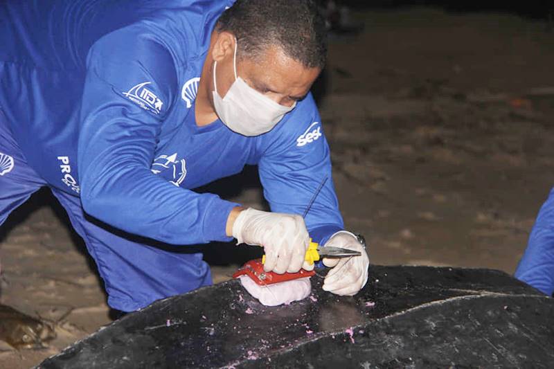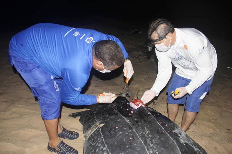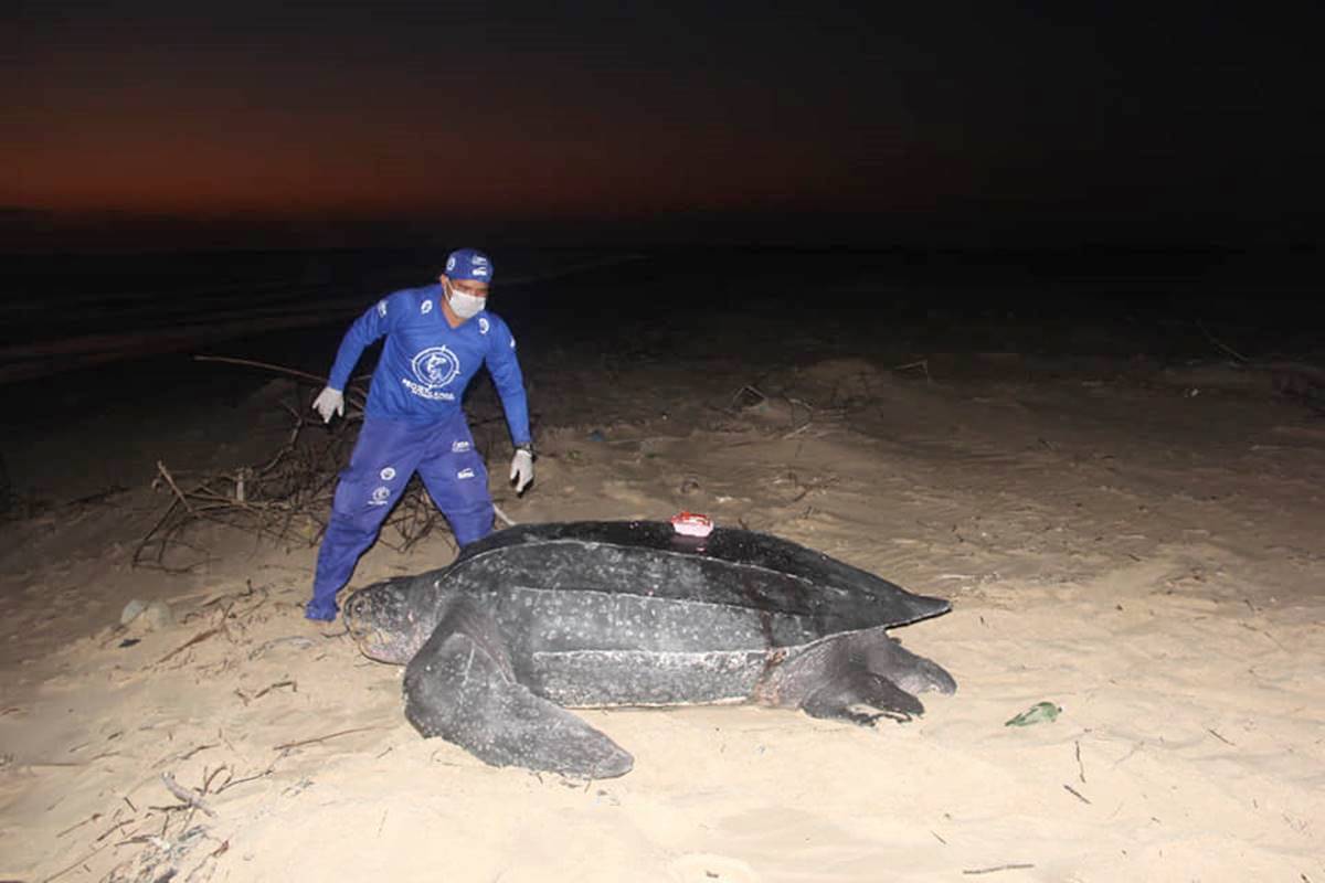 Com um tamanho de 168 cm o animal recebeu um transmissor no casco para ser monitorada via satélite. Até o momento, a equipe confirmou três ninhos de tartaruga-de-couro no litoral piauiense na temporada reprodutiva de 2019. Um ninho na praia do Arrombado em Luís Correia e os demais ninhos na praia da Pedra do Sal. Os ninhos são identificados com estacas do Instituto Tartarugas do Delta.